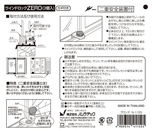 ウインドロックZEROは、カギ(ツマミ)が脱着可能な二重安全装置付きサッシ用補助錠です。