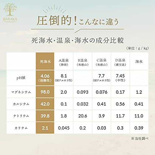 天然素材が持つ力強い成分を用いたケアアイテムをメインに販売している『バラカ』。死海から精製された天然塩を用いることで、豊富な天然ミネラルをそのまま浴槽にプラスして身体を癒せる入浴剤です。